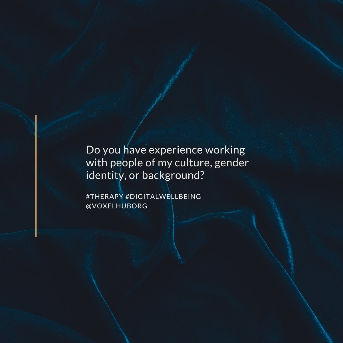There is no golden rule around this, and our needs may differ across our life span. You may want to work with a therapist who shares some aspects of your identity. For example, I work with a lot of migrants who manage complex cultural situations. However, it can also be helpful to sit with someone who represents and, more importantly, can hold the difference in the room. I work with men, and those male clients report feeling understood regardless of our gender difference. A good therapist will find a balance between celebration of similarities (without making assumptions that they “get you”) and bridging of differences.